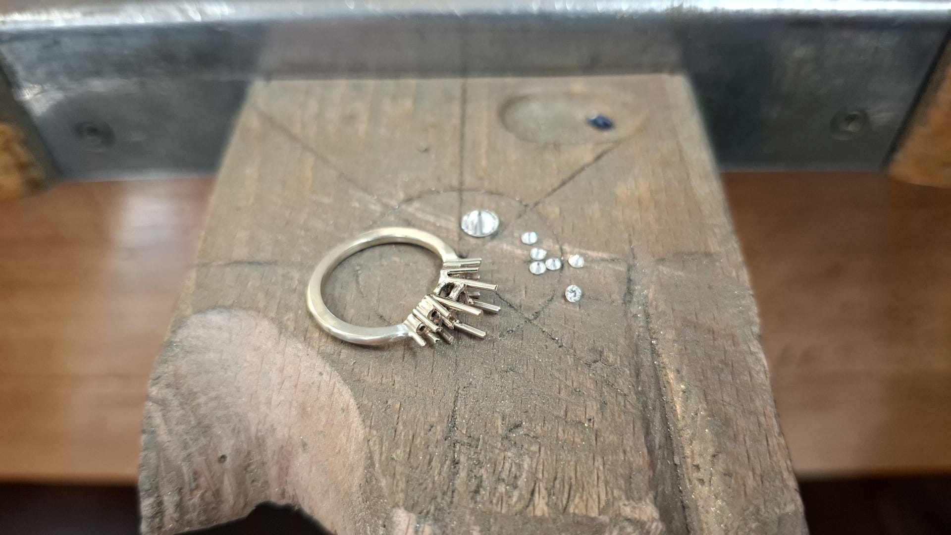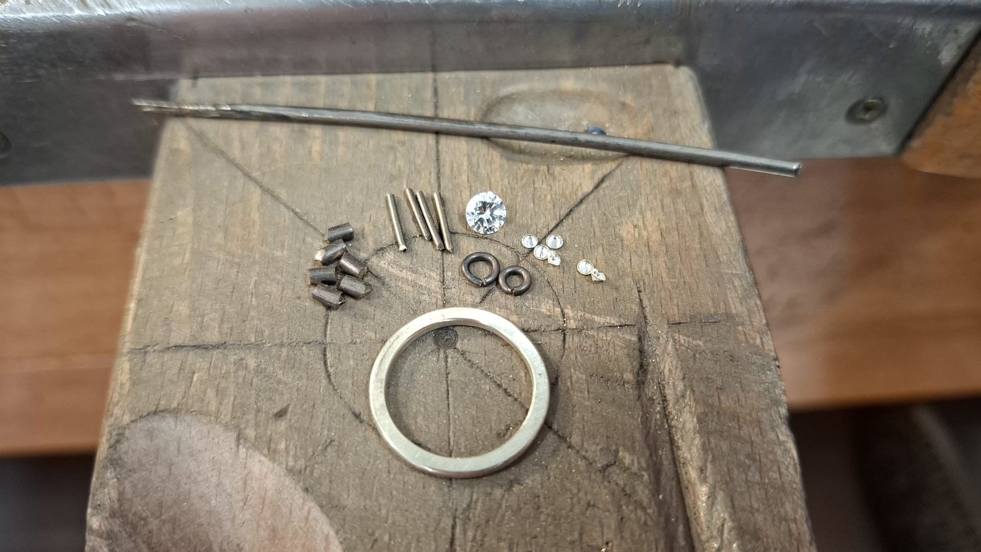 A partir de diamants fournis par la cliente , fabrication d’une bague en or blanc 18K